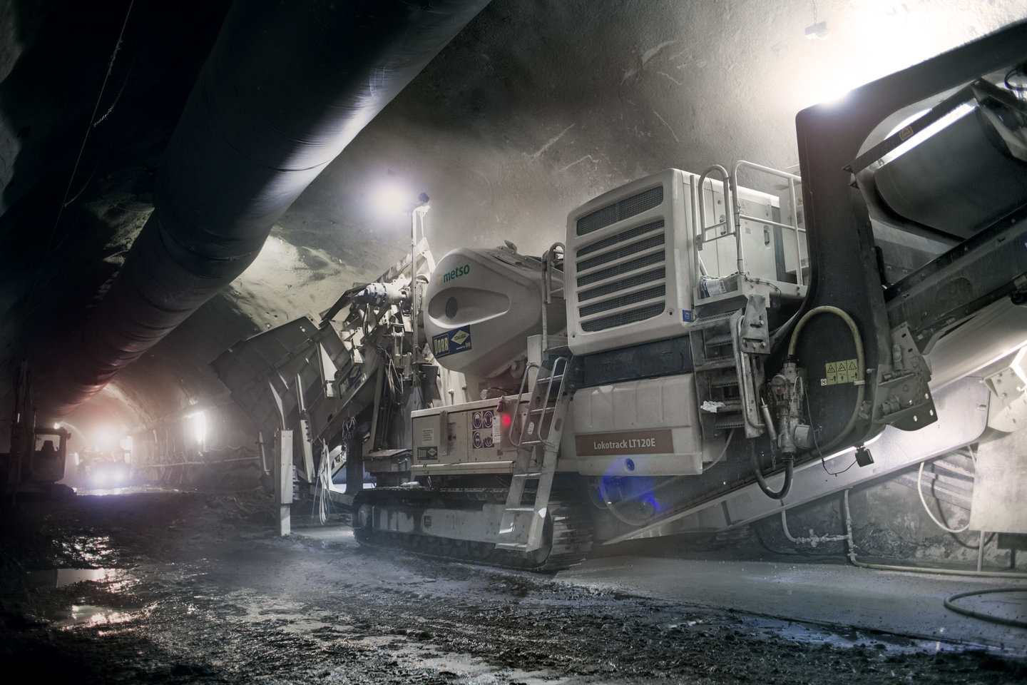 Concasarea mobilă în interiorul tunelului permite utilizarea conveioarelor pentru transportarea materialului concasat la exterior, această metodă economisind energie și bani, făcând posibilă curăţarea tunelului în mod rapid. Pe măsură ce lucrarea avansează, staţia Lokotrack este mutată în timpul extracţiei, la fiecare 500 de metri, concasoarele Metso fiind de altfel ușor de ajustat, în conformitate cu variaţiile geologice.