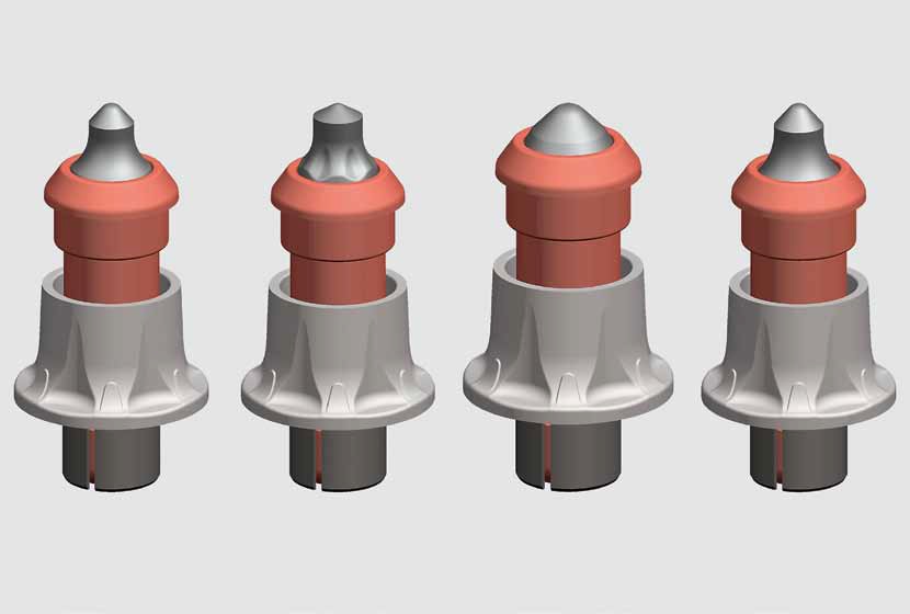 Din acest motiv, noul design a conferit vârfului de carbid o geometrie special concepută pentru utilizarea în scopul menţionat, la care a fost adăugat un con de uzură. În plus, conul de uzură a fost detaşat de coada uneltei, iar rezistenţa la uzură a fost ameliorate pentru a se asigura o uzură uniform a vârfului de carbid şi a corpului de oţel al sculei tăietoare.