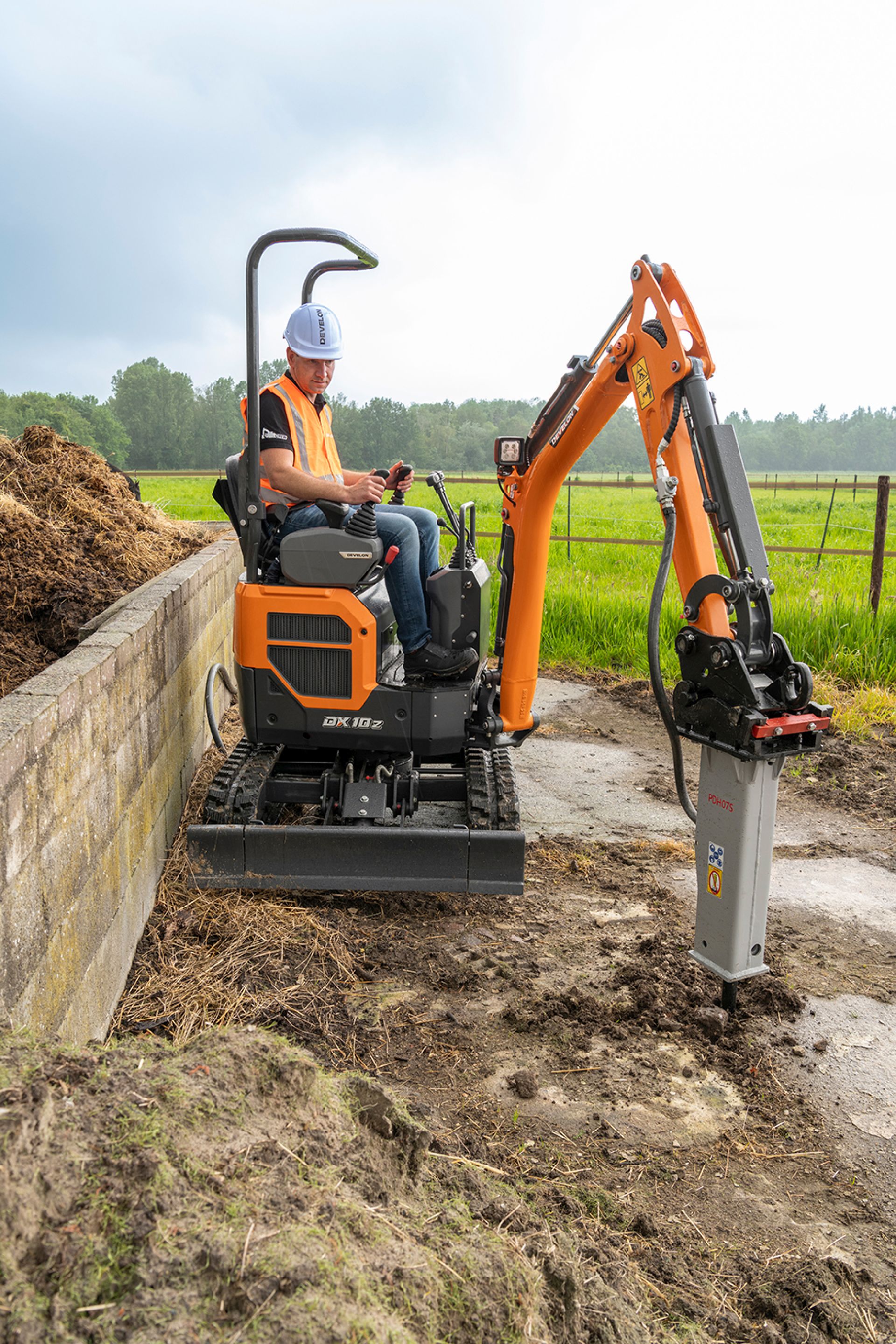 Performanțele mult îmbunătățite ale excavatorului DX10Z-7, comparativ cu alte modele similare, se bazează pe noul design al brațului, care are o lungime de 1,45 m, la fel ca și lungimea cotrabrațului care a crescut de la 810 la 890 mm, rezultând o rază de lucru semnificativ îmbunătățită în comparație cu DX10Z. Aceasta include o creștere cu 21,5% a înălțimii de lucru, la 2.205 mm și o mărire cu 8,5% a razei de săpare la nivelul solului, aceasta ajungând acuma la 3.355 mm.