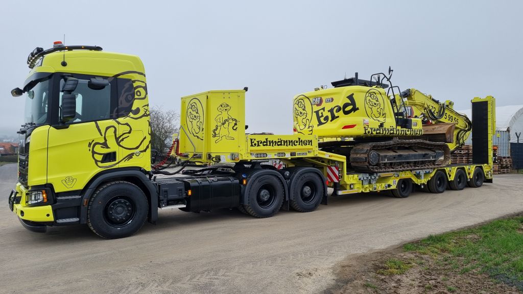 Erdmännchen Erd- und Tiefbau GmbH of Ebsdorfergrund is an earthworks specialist for all fields of construction. In addition to earthworks and excavation work, their activities also include road construction and transportation of the relevant plant and materials. The loads to be transported vary, from excavators, dumper trucks, rollers, pavers and graders to materials like concrete pipes, foundations and bulk. This makes flexibility the key with regard to the vehicle fleet.