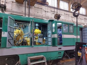 Modernizarea de către Remarul Cluj a locomotivei de cale îngustă pentru fabrica de ciment Heidelberg din Fieni. Locomotiva transportă conglomerate de piatră din carieră, încărcarea trenului : 550 tone (vagoane + piatră)