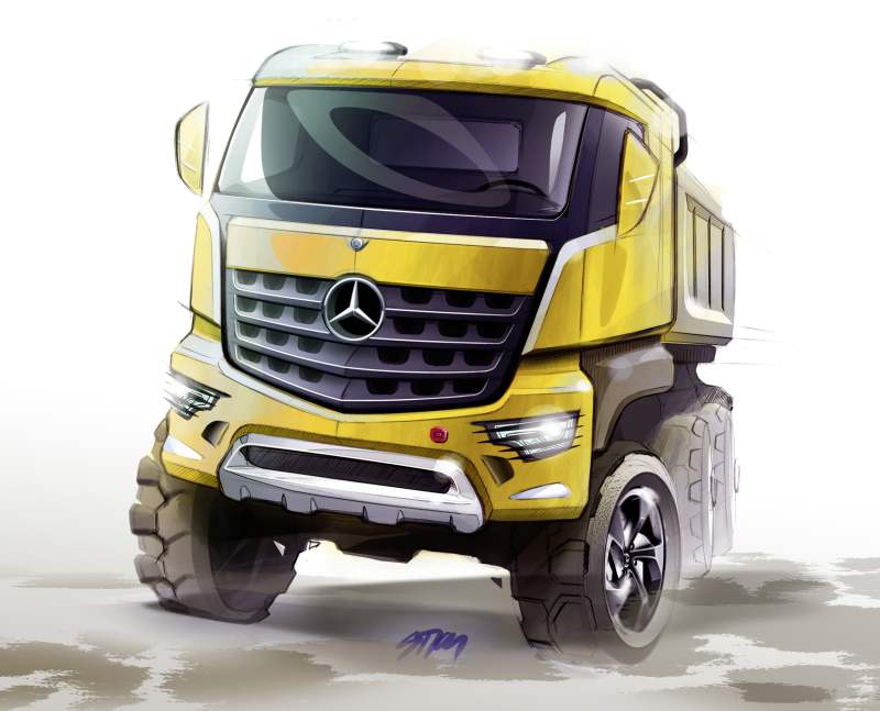 Designul noilor vehicule pentru construcţii Mercedes este la fel de neobişnuit, cum este de altfel întreg camionul. Aceste camioane se remarcă prin grila radiatorului, în formă de dinţi. Elementele de oţel integrate în bara de protecţie, un scut robust pentru radiator și treptele de acces în cabină sau la nivelul platformei din spate integrate și ele în structura de oțel a acesteia, oferă un aspect armonios și ultramodern.