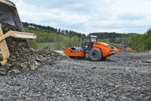 Pentru acest șantier, echipa de constructori din Sauerland a prezentat însă o alternativă mai simplă și mai rentabilă – fără concasor și cu o reducere considerabilă a numărului de camioane de transport, folosind în schimb două compactoare monocilindrice H 25i VC. Mai întâi a fost organizată o zonă de testare, iar rezultatele au fost cât se poate de concludente: compactoarele monocilindrice VC ale Hamm au reușit să spargă piatra precum un concasor, direct la dimensiunile cerute.