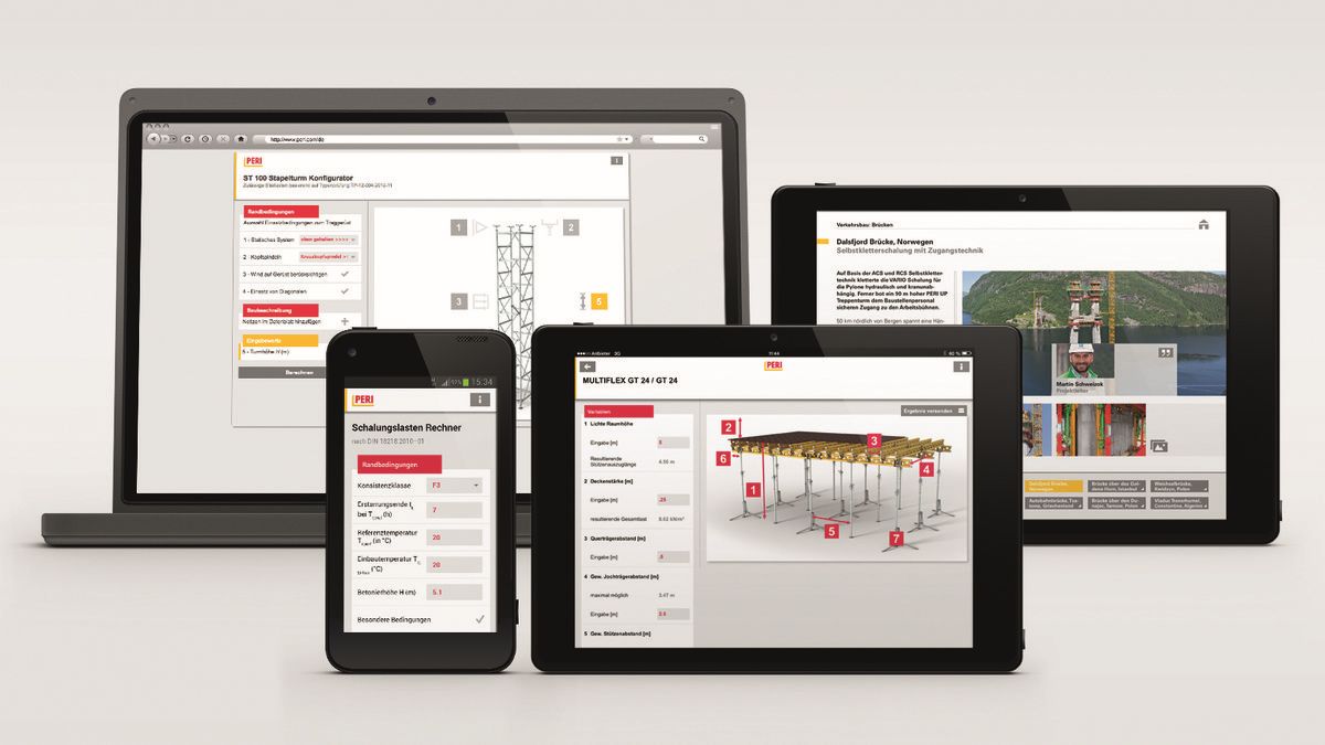 PERI a dezvoltat și îmbunătățit trei dintre aplicațiile destinate utilizării sistemelor de cofrare și eșafodaje pe șantierele de construcți: Formwork Load Calculator, MULTIFLEX Configurator și ST 100 Stacking Tower Configurator, ale căror beneficii facilitează operațiunile de lucru cotidiene.