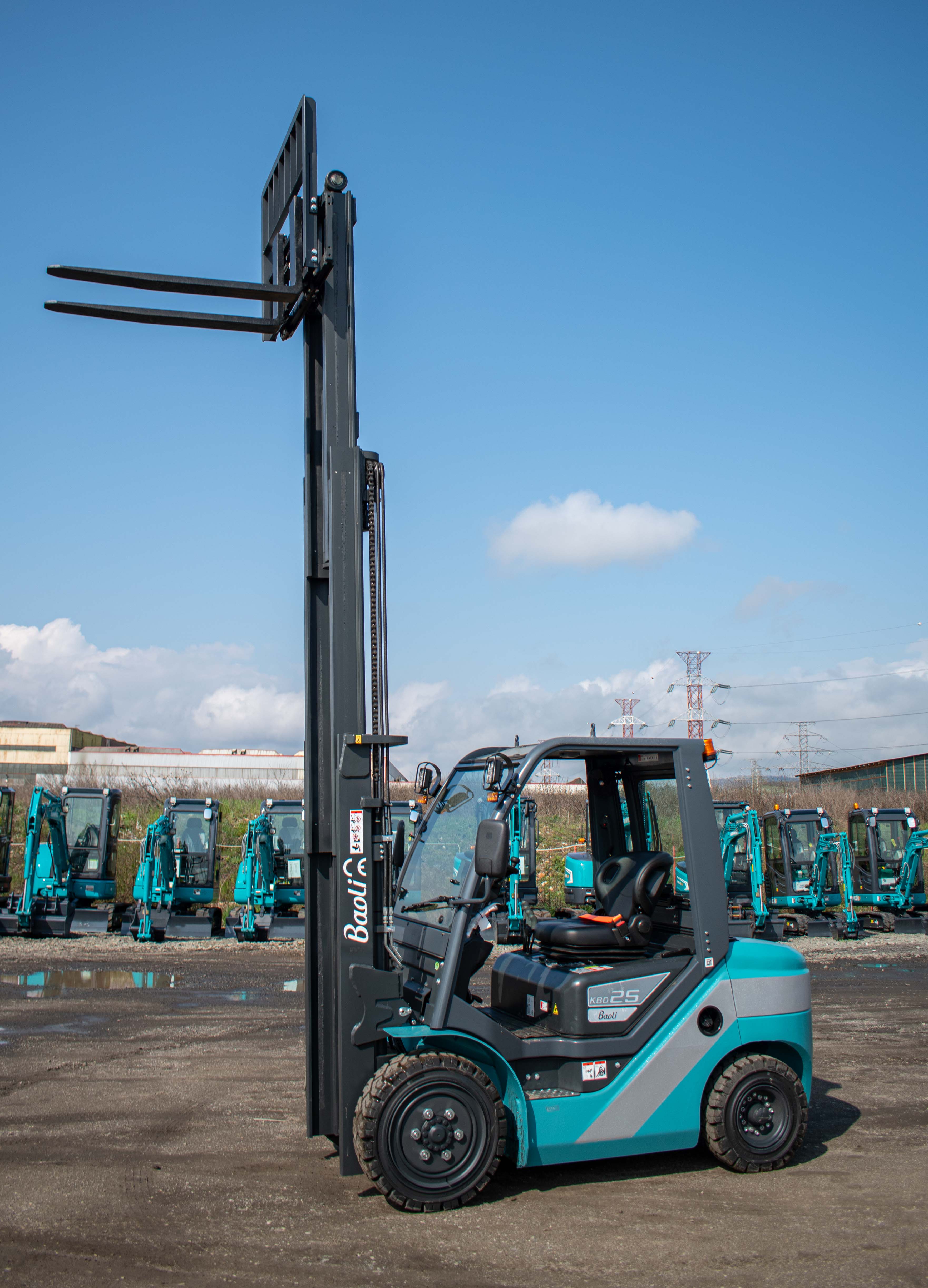 Acest utilaj este dotat cu un motor diesel marca Mitsubishi, o companie care nu mai are nevoie de nicio prezentare. Trecem în revistă doar experiența de 152 de ani și faptul că producătorul japonez este sinonim cu excelența. Motorul are 4 cilindri și generează 47 de cai putere, la 2.250 de rotații pe minut. Capacitatea de încărcare a motostivuitorului Baoli KBD 25+ este de 2,5 tone, iar greutatea sa proprie este de 4.620 de kilograme.