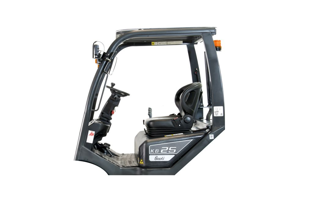 Designul motostivuitorului Baoli KBD 25+ este realizat în spiritul siguranței operatorului și a celor din jurul său, grație vizibilității maxime, atât la deplasarea înainte, cât și în marșarier. În același registru, se încadrează și forma și aspectul contragreutății. Mentenanța este înlesnită de accesul facil la componente, grație unei deschideri largi a panoului metalic ce protejează motorul. Mai exact, o deschidere la 90 de grade și un compartiment motor de mari dimensiuni. Adăugăm transmisia KION hidrodinamică și cilindrii de ridicare cu amortizare la coborâre, pentru o maximă siguranță în manipularea încărcăturilor fragile.