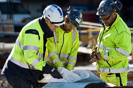 Divizia de construcții a avut vânzări de 128 de miliarde de coroane suedeze (14,4 miliarde de euro), care au determinat o creștere de 2% față de anul anterior. Veniturile operaționale au crescut cu 10% la 3,83 de miliarde de coroane suedeze (433 de milioane de euro), în timp ce profitul operațional a crescut cu 3%, comparativ cu cele 2,8 de procente înregistrate în 2012.