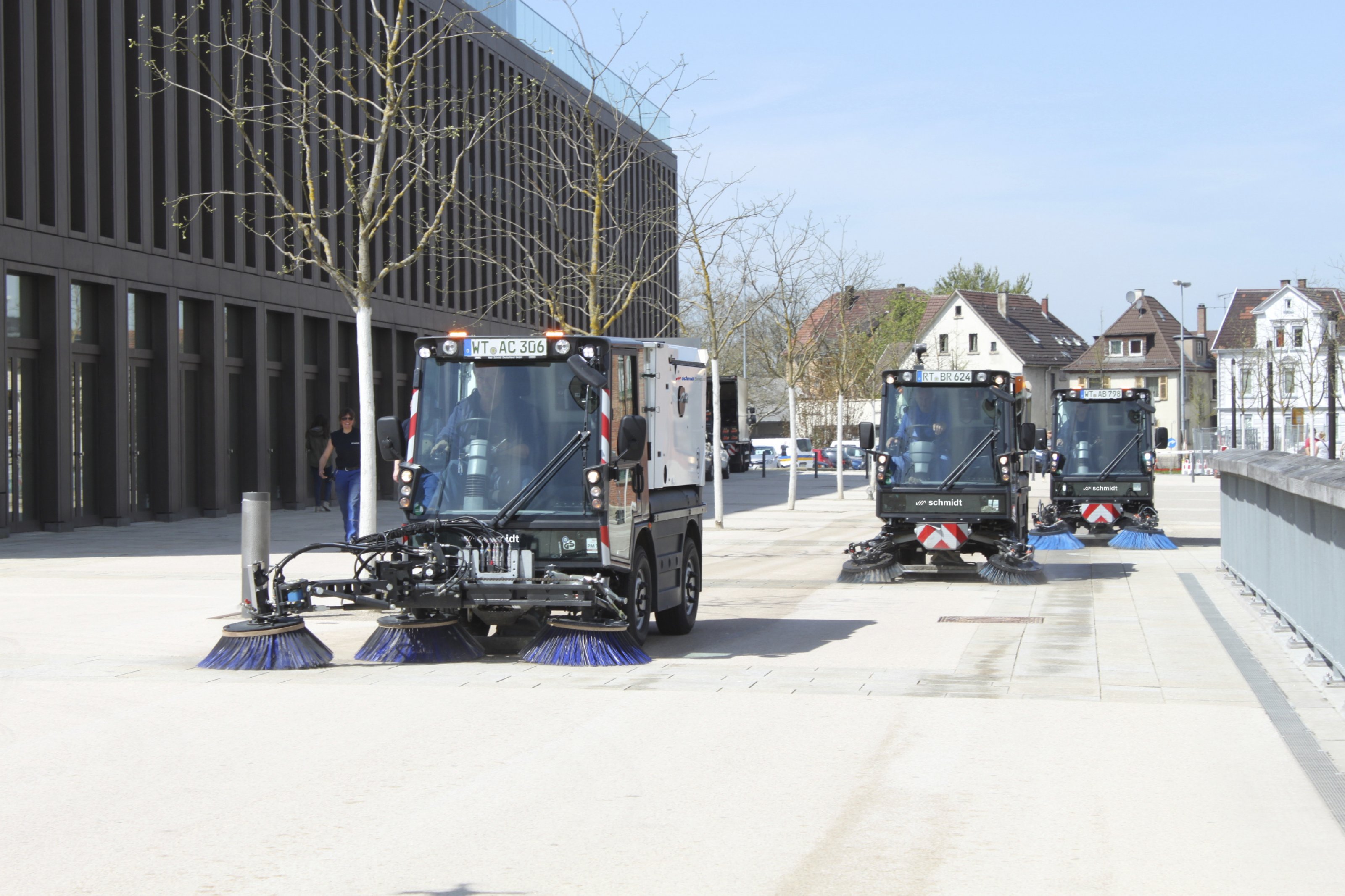 Sistemul cu 3 perii, dintre care o perie frontală pivotantă, oferă diferite posibilități de utilizare și o lățime de măturare de până la 2.600 mm. Peria frontală se mișcă drept, pivotând de la dreapta la stânga, putând mătura pe două nivele sau putând fi utilizată pentru curățarea buruienilor de la marginea drumului. Mișcările periei din față sunt controlate hidraulic, inclusiv viteza de rotație și forța de apăsare. Cele două perii retrase sunt plasate sub cabină și asigură aspirarea gunoaielor și dirijarea acestora către gura de aspirație fără a lăsa spațiu liber, astfel fiind eliminată posibilitatea formării de șiruri. Opțional, înclinarea celor două perii poate fi controlată hidraulic în mod independent, astfel că măturarea este eficientă indiferent de profilul drumului.
