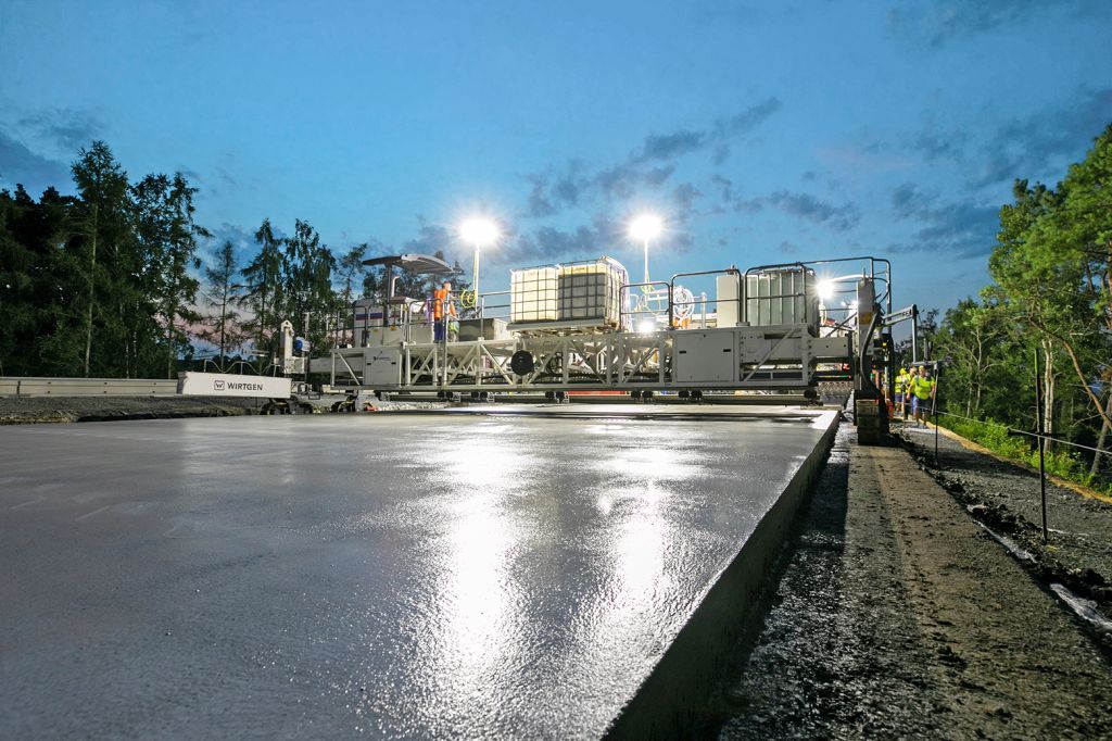Construcția autostrăzilor cu structură rezistență din beton solicită turnarea unor cantități mari de material, de multe ori în straturi suprapuse, într-o perioadă scurtă de timp, și dacă se poate fără pierderi laterale. Wirtgen, cel mai mare producător mondial de utilaje pentru construcția și întreținerea drumurilor, asigură pentru astfel de șantiere o soluție eficientă și rapidă de lucru, care înglobează utilaje de turnare a betonului cu cofraj glisant, precum modelul SP 154(i) ce pot lucra împreună cu mașini de tratare a suprafeței din seria TCM 180(i), acestea din urmă având rolul de a finaliza activitatea de preparare a stratului final de beton.